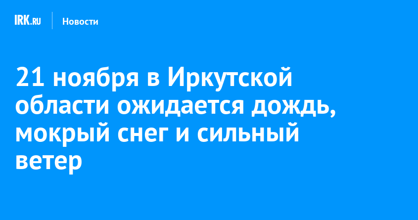 21 ноября в Иркутской области ожидается дождь, мокрый снег и сильный ветер