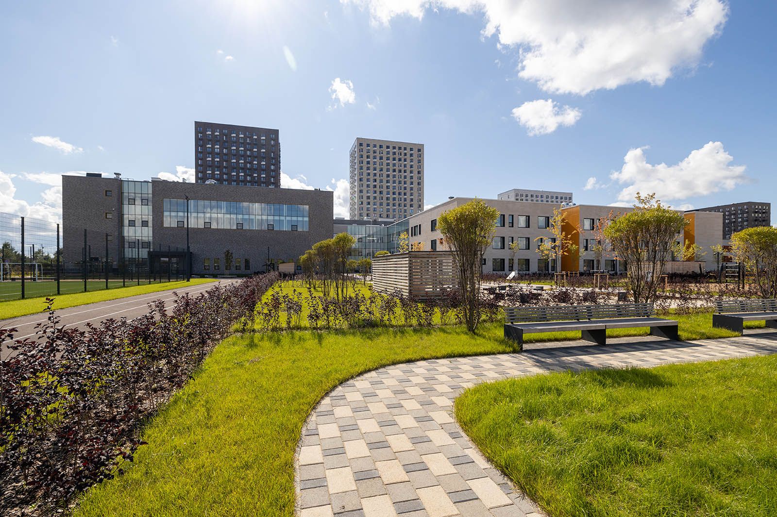 Так, в одном из жилых комплексов Коммунарки в этом году построили и открыли уже две школы и один сад. В совокупности в них занимаются 2520 учащихся. Внутри сформировали современные образовательные пространства, на прилегающих территориях высадили деревья, кустарники, разбили цветники, благоустроили школьные стадионы, игровые и спортивные площадки.