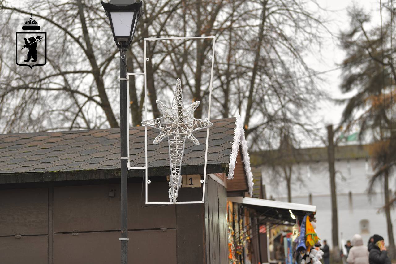 В Ярославле начали украшать улицы к Новому году. В сквере на улице Революционной установили новогодние консоли в виде звезд.