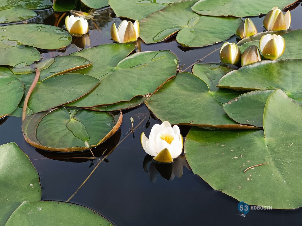 Например, корреспондент «53 новостей» заметил целую «полянку» белых кувшинок.