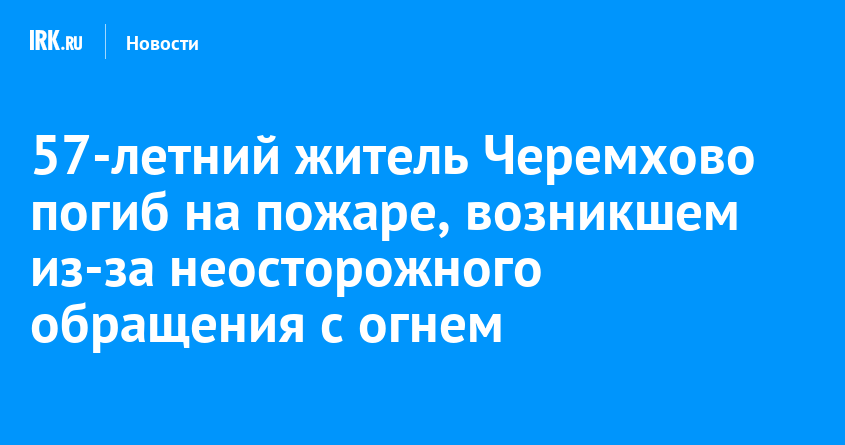 57-летний житель Черемхово погиб на пожаре, возникшем из-за неосторожного обращения с огнем