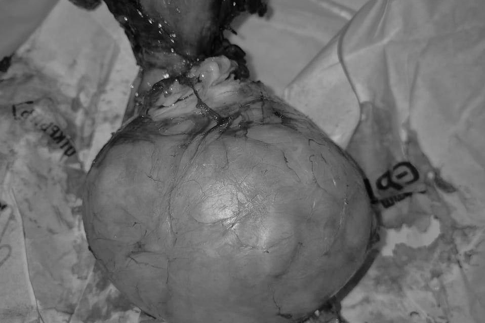 Врачи рассказали, что опухоль диаметром 20 сантиметров занимала весь малый таз. Операция была технически очень тяжелой, потому что нужно было освободить миоматозный узел, который рос из шейки матки от мочевого пузыря, мочеточников и крупных сосудов.