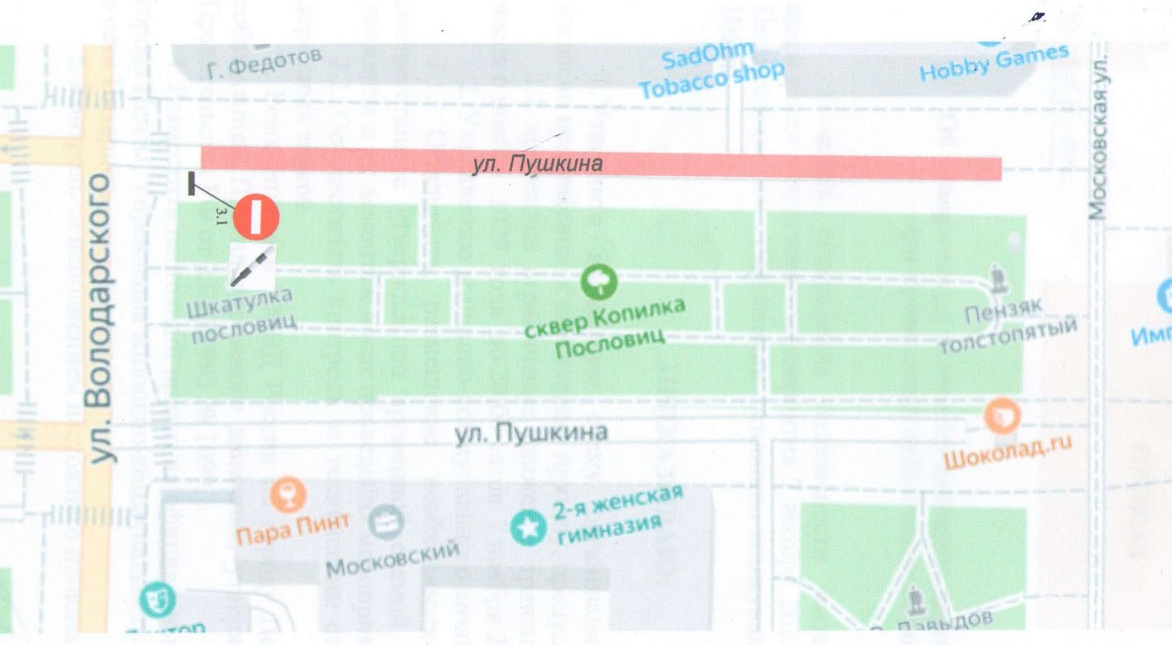 Движение перекроют с северной стороны сквера «Копилка пословиц», на участке от улицы Володарского до улицы Московской.