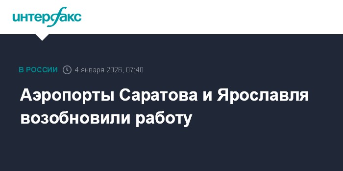 Москва. 4 января. INTERFAX.RU - Ограничения на прием и выпуск воздушных судов сняты в аэропортах Саратова и Ярославля, сообщил в своем телеграм-канале представитель Росавиации Артем Кореняко.