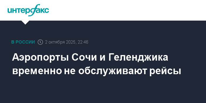 Москва. 2 октября. INTERFAX.RU - Временные ограничения введены в аэропортах Сочи и Геленджика, сообщил представитель Росавиации Артем Кореняко в четверг вечером в своем телеграм-канале.