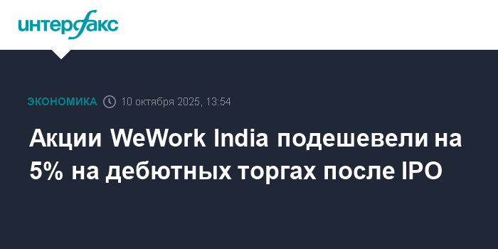 Акции WeWork India подешевели на 5% на дебютных торгах после IPO