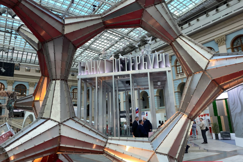 Архитектурная композиция петербургского стенда состояла из открытого павильона в классическом стиле с парящими над ним чайками. В основании павильона – Генеральный план города. Трехсотлетняя история Северной столицы была представлена в уникальных картографических материалах, а новый Генплан, вступивший в силу в 2024 году, — на отдельных интерактивных панелях.