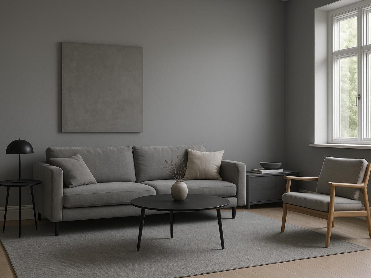 Фото: Generated by AI (DALL·E 3 by OpenAI) is licensed under Free for commercial use (OpenAI License) Серая комната в современном стиле Как цвет влияет на восприятие пространстваОптические эффекты цвета известны давно. Светлые тона зрительно увеличивают площадь, отражая больше света, тогда как темные создают глубину и уют. Однако многие специалисты уверены: не стоит ограничиваться только белым и бежевым — глубокие оттенки способны не меньше расширить границы комнаты, если грамотно использовать контраст.