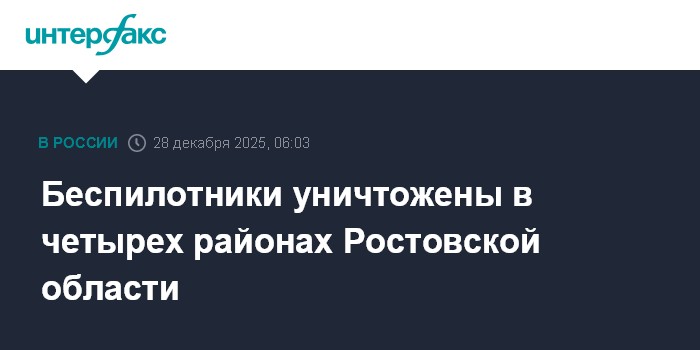 Москва. 28 декабря. INTERFAX.RU - Губернатор Ростовской области Юрий Слюсарь сообщил о ликвидации беспилотников в четырех северных районах региона в ночь на воскресенье.