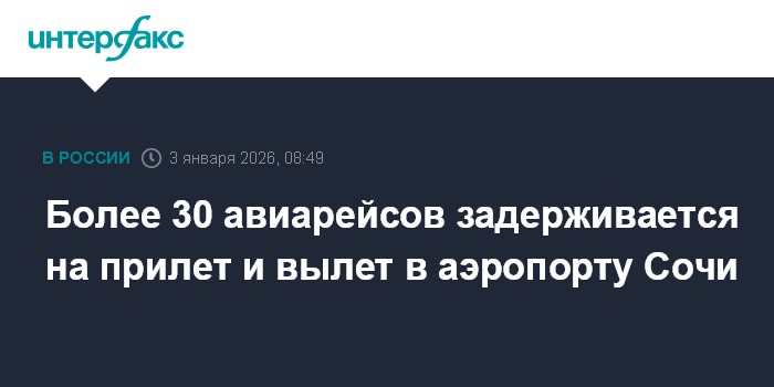 Москва. 3 января. INTERFAX.RU - Задерживается вылет 17 рейсов из аэропорта Сочи (Краснодарский край), на прилет задерживаются 18 рейсов, следует из данных онлайн-табло аэропорта.