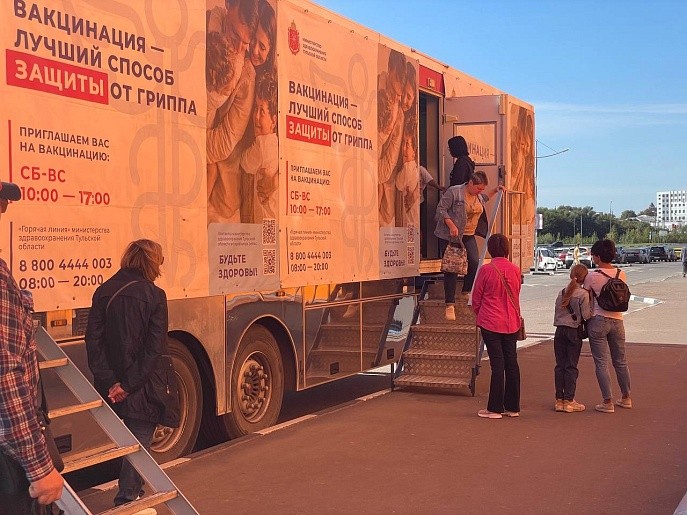 Возле торгового центра «Макси» в Туле работал мобильный прививочный пункт, где за выходные дни вакцину от гриппа получили более 360 человек. Медики областной больницы №2 имени Л.Н. Толстого проводили вакцинацию в передвижном медицинском комплексе.