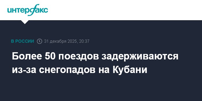 Москва. 31 декабря. INTERFAX.RU - Аномальные снегопады в Краснодарском крае и сбой в графике движения привел к задержке 55 поездов, сообщает Федеральная пассажирская компания (ФПК) в своем телеграм-канале в среду.