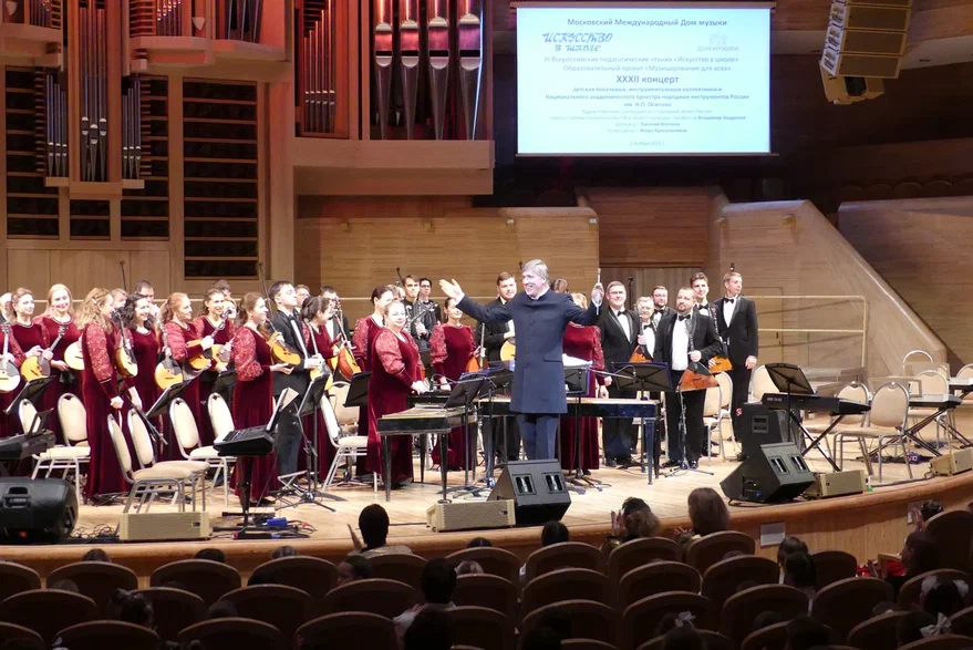 В Светлановском зале Московского международного Дома музыки завершился XXXII концерт Всероссийского образовательного проекта «Музицирование для всех». Мероприятие открыли III Всероссийские педагогические чтения «Сохранение и укрепление традиционных духовно-нравственных ценностей средствами искусства».