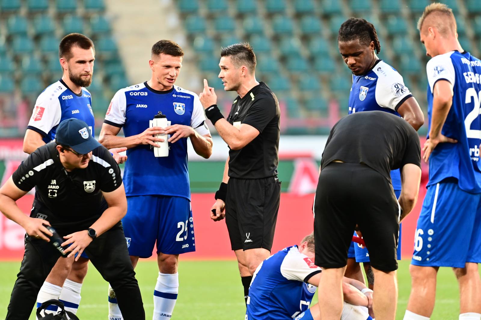 Напомним, что с 30-й минуты встречи калининградская команда игра в меньшинстве, прямую красную карточку получил Ираклий Манелов, а через три минуты был удалён главный тренер Андрей Талалаев.