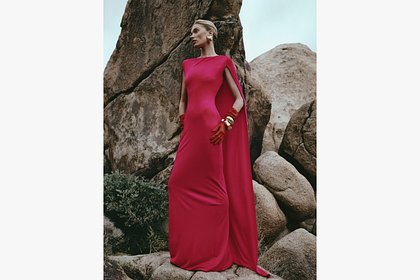 36-летняя манекенщица позировала на размещенном кадре в красном облегающем платье длины миди с кейпом. При этом звезда отказалась от бюстгальтера.
