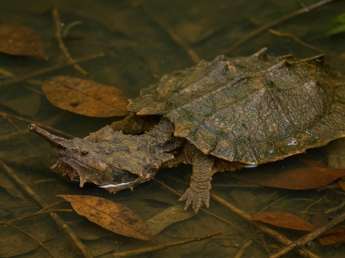 В тёплых водах Амазонки и Ориноко живёт существо, которое с первого взгляда можно принять за кусок дерева или древний камень. Черепаха мата-мата (Chelus fimbriatus) - одна из самых необычных рептилий планеты. Её массивный, узловатый панцирь по форме напоминает лист или кору, а треугольная голова с длинной трубчатой мордой и бахромой из кожистых выростов делает её похожей на персонажа доисторической эпохи.
