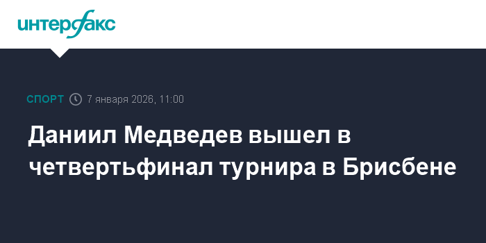 Даниил Медведев вышел в четвертьфинал турнира в Брисбене