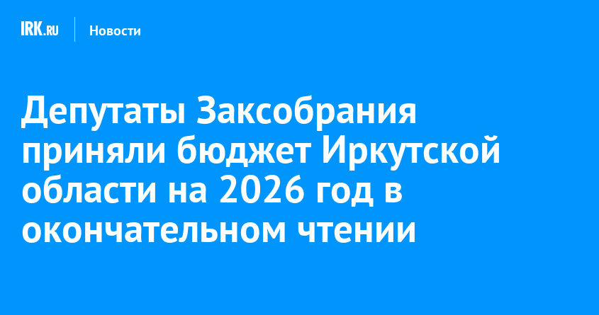 Депутаты Заксобрания приняли бюджет Иркутской области на 2026 год в окончательном чтении