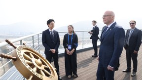 У трапа от китайской стороны его встретили заместитель губернатора провинции Чжэцзян Лу Шань, заместитель руководителя секретариата правительства провинции Чжецзян Жэнь Сяньфэн, заместитель мэра города Нинбо Е Мяо, замдиректор департамента Минкоммерции КНР Чжан Дун.
