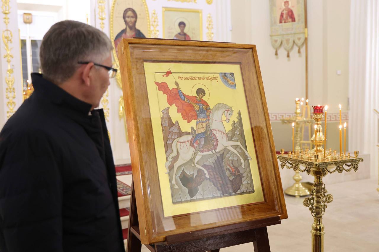 Дмитрий Миляев передал икону святого Георгия Победоносца в казанский храм-памятник