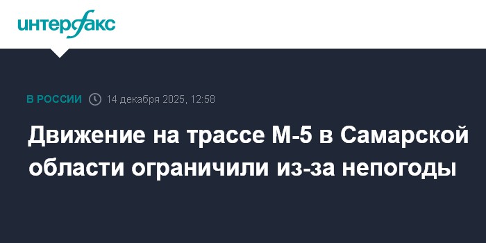 Москва. 14 декабря. INTERFAX.RU - Временное ограничение движения для маршрутного и грузового транспорта ввели на участке федеральной трассы М-5 "Урал" в Самарской области из-за сильного снегопада и ограниченной видимости, сообщает ФКУ "Поволжуправтодор" в воскресенье.