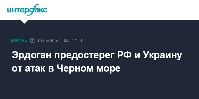 Москва. 16 декабря. INTERFAX.RU - Президент Турции Реджеп Тайип Эрдоган после инцидента со сбитым беспилотником в районе Черного моря заявил, что Анкара предостерегает и российскую, и украинскую сторону от действий, которые могут создать угрозу судоходству в Черном море.