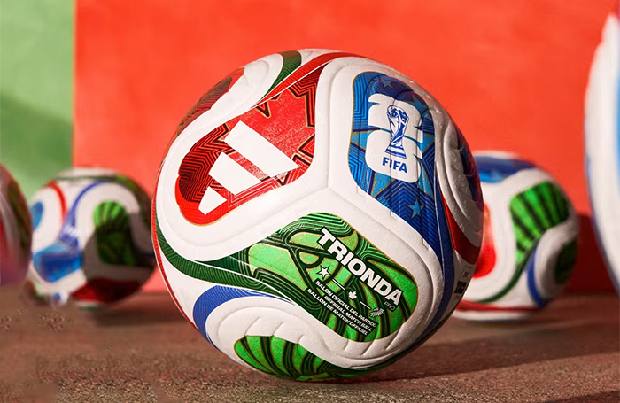 Сам мяч выполнен в трех цветах — красном, зеленом и синем. Кроме того, он украшен символикой, представляющей каждую страну-хозяйку: кленовый лист — Канада, орел — Мексика, звезды — США.