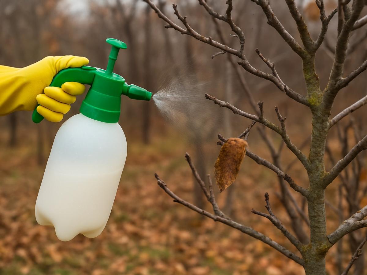 Фото: Generated by AI (DALL·E 3 by OpenAI) is licensed under Free for commercial use (OpenAI License) Осенняя обработка сада Санитарная очистка садаОпавшая листва и остатки травы формируют плотный слой, который может показаться безобидным, но именно под ним зимуют грибковые инфекции и личинки насекомых. Поэтому садоводы тщательно собирают все растительные остатки и удаляют их с участка. И хотя подобная уборка кажется простой, она исключает риски, которые незаметно накапливаются за сезон.Деревья в этот период становятся открытыми для осмотра: исчезнувшая листовая масса показывает трещины на коре и сухие участки. Стволы очищают жёсткими щётками, снимая отслаивающиеся фрагменты. Такая обработка уменьшает вероятность зимовки короедов и других вредителей, создавая для них непреодолимый барьер.