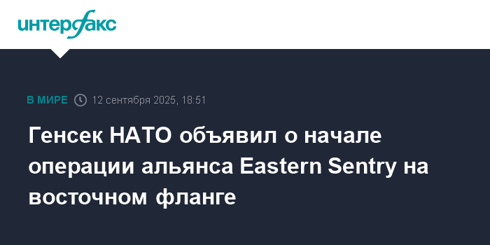 Москва. 12 сентября. INTERFAX.RU - НАТО начинает операцию Eastern Sentry ("Восточный страж"), заявил на пресс-конференции в пятницу генеральный секретарь альянса Марк Рютте.