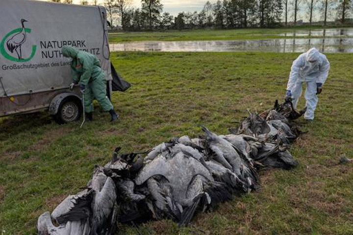 Осенний перелет превратился в санитарный кошмар. На водохранилище Кельбра — ковер из мертвых журавлей, в Бранденбурге насчитали уже свыше тысячи павших птиц. Фермеры забивают стада, ветеринары дежурят в защитных костюмах. Природа словно подала знак: вирус снова идет на юг — вместе с крыльями.