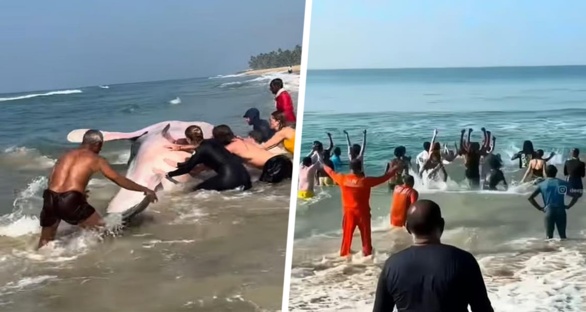 Солнечное утро на пляже Варкала в индийском штате Керала началось с необычного и тревожного зрелища. Около восьми часов утра на берег выбросило огромную китовую акулу, что вызвало сначала панику, а затем – волну солидарности среди отдыхающих и местных жителей. Мирный гигант, который, по всей видимости, случайно попал в рыбацкую сеть, оказался в беспомощном положении на песчаном берегу, где волны то накатывали на него, то отступали, оставляя его без возможности вернуться в родную стихию.