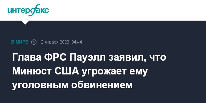 Москва. 12 января. INTERFAX.RU - Председатель Федеральной резервной системы (ФРС) США Джером Пауэлл заявил, что Министерство юстиции готовится предъявить ему уголовные обвинения, сообщает NBC News.