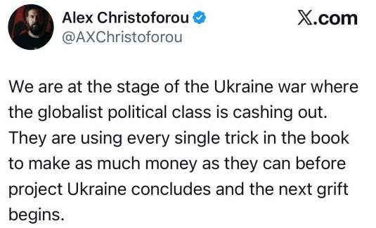 Сейчас украинский конфликт находится на стадии, когда глобалистский политический класс наживается на нем. Об этом заявил в соцсети Х американский журналист Алекс Христофору.