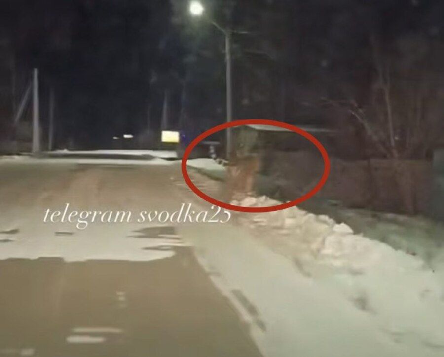 Хищная кошка устроила ночной променад среди домов в одном из поселков Приморья