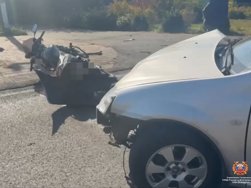 В результате ДТП водитель мотоцикла получил телесные повреждения, сообщили в пресс-службе белгородской Госавтоинспекции.