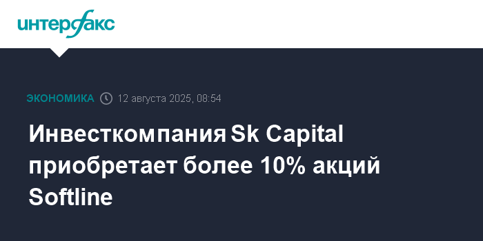 Москва. 12 августа. INTERFAX.RU - Инвесткомпания Sk Capital, входящая в ВЭБ.РФ, становится владельцем более 10% акций ГК Softline, говорится в сообщении группы.