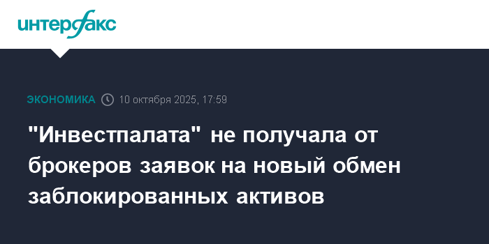 Москва. 10 октября. INTERFAX.RU - "Инвестиционная палата" не получала обращений от участников рынка о проведении нового обмена заблокированных активов российских инвесторов, сообщил брокер.