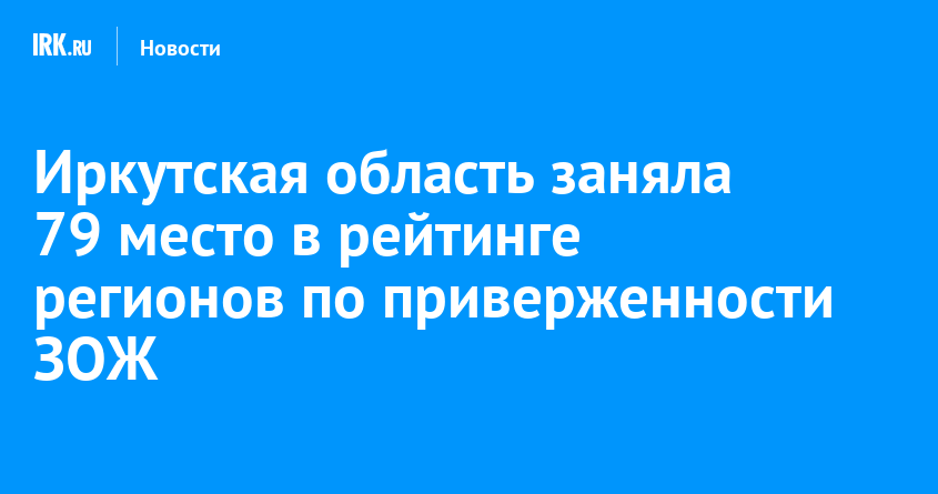 Иркутская область заняла 79 место в рейтинге регионов по приверженности ЗОЖ