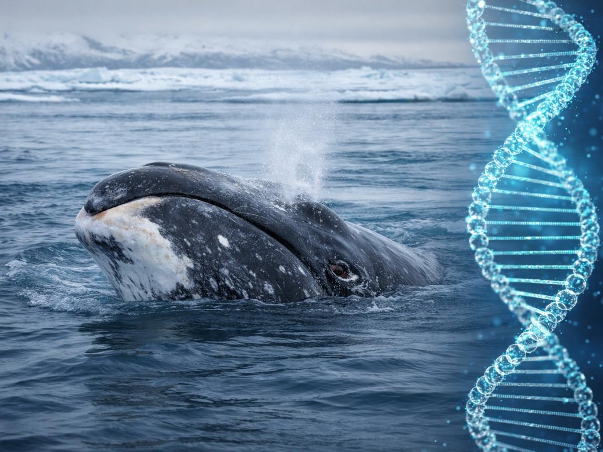 Фото: Анна Маляева is licensed under Рubliс domain Кит в океане и ДНК Почему гренландский кит живёт дольше всехГренландский кит — самое долгоживущее млекопитающее на планете. Эти животные обитают в ледяных водах Арктики, весят до 80 тонн и при этом крайне редко сталкиваются с онкологическими заболеваниями. Учёные связывают это с особенностями восстановления клеток и защитой ДНК от повреждений.