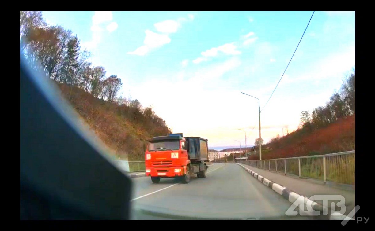 Из-за поворота на встречку: мусоровоз едва не спровоцировал ДТП в Холмске