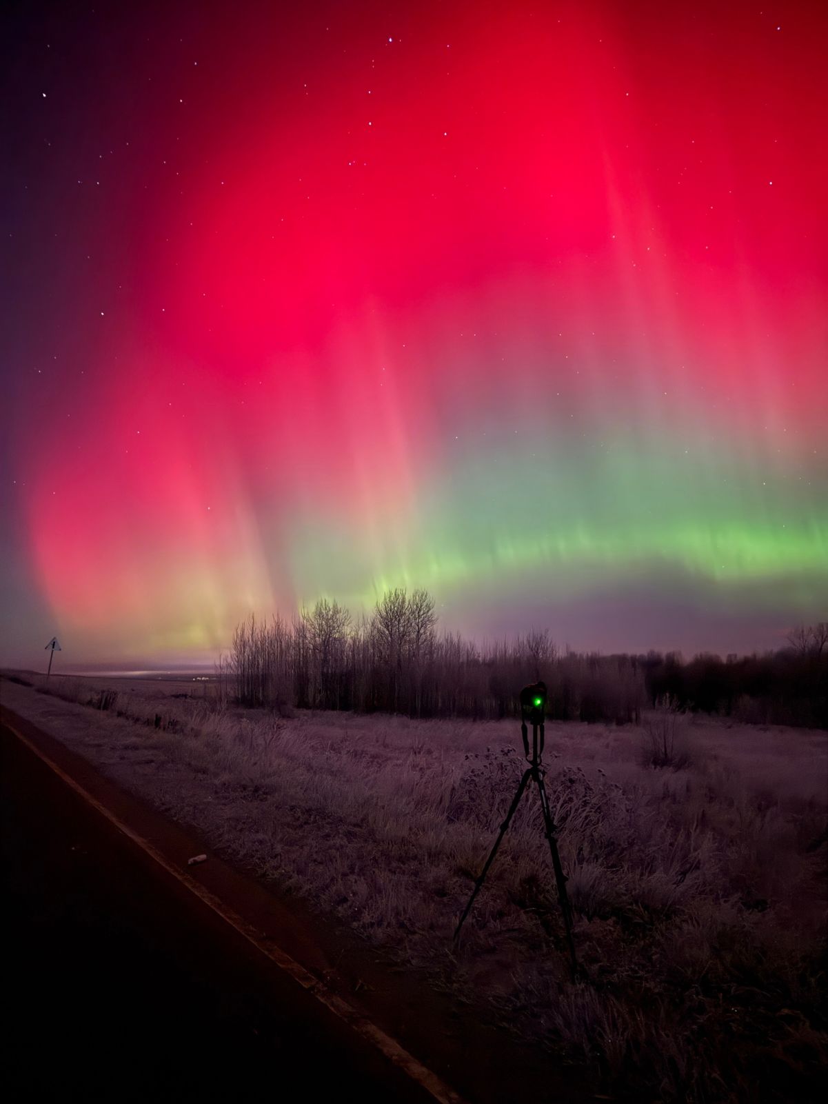 В Ярославле смогли запечатлеть на камеру северное сияние. Это явление возникло в связи с магнитными бурями, которые проявляют себя с вечера 11 ноября.