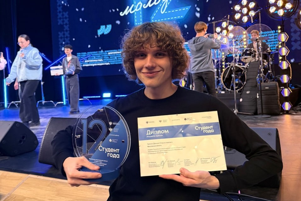 Лауреатом национальной премии «Студент года» в номинации «Интеллект года» стал студент ЯГПУ Даниил Грекин. Церемония награждения прошла в Москве на всероссийском студенческом форуме «Твой ход – 2025». Мероприятие, организованное в рамках национального проекта «Молодежь и дети», объединило 2500 россиян со всей страны.