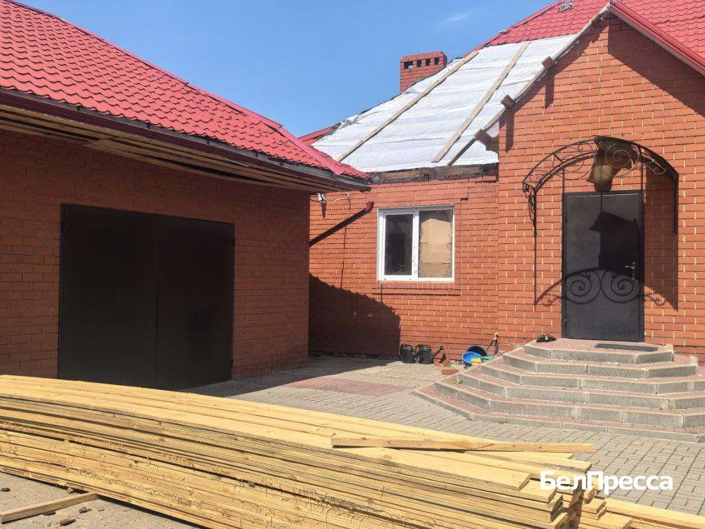 «Удар пришёлся в центр дома, из‑за чего 600 кв. м металлочерепицы приподняло и сместило. Работы очень много, и сделать её нужно быстро, чтобы не залило дождём», – рассказал замглавы администрации округа – начальник управления по строительству, транспорту, ЖКХ и ТЭК Роман Твердун.