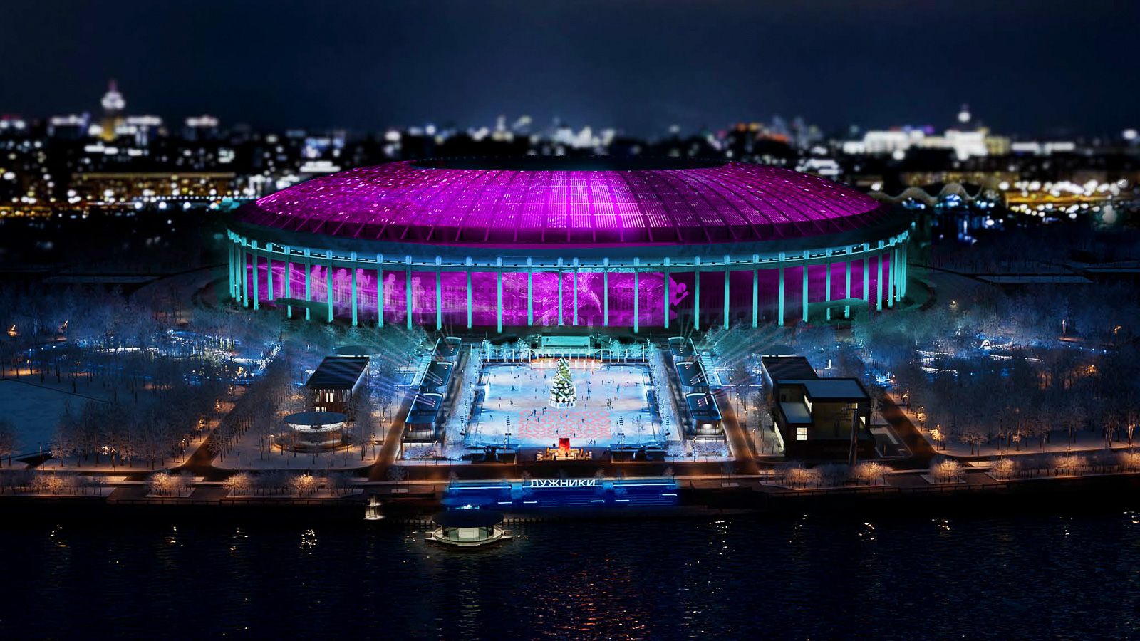 По словам мэра, на главной площади ОК «Лужники» сделали фонтан, который зимой будет превращаться в каток. Он займет не только центральную часть, но и боковые аллеи комплекса. Его общая площадь составит больше 16 тыс. кв. м. Там появится уникальная архитектурно-художественная подсветка. По периметру заработают различные кафе и рестораны, а также пункты проката.