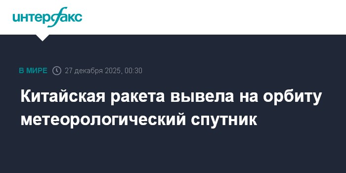 Москва. 27 декабря. INTERFAX.RU - Китайская ракета-носитель "Чанчжэн-3Б" ("Великий поход-3Б") в пятницу по московскому времени вывела на орбиту метеорологический спутник "Фэнъюнь-4Б" (Fengyun-4B), сообщили местные СМИ.