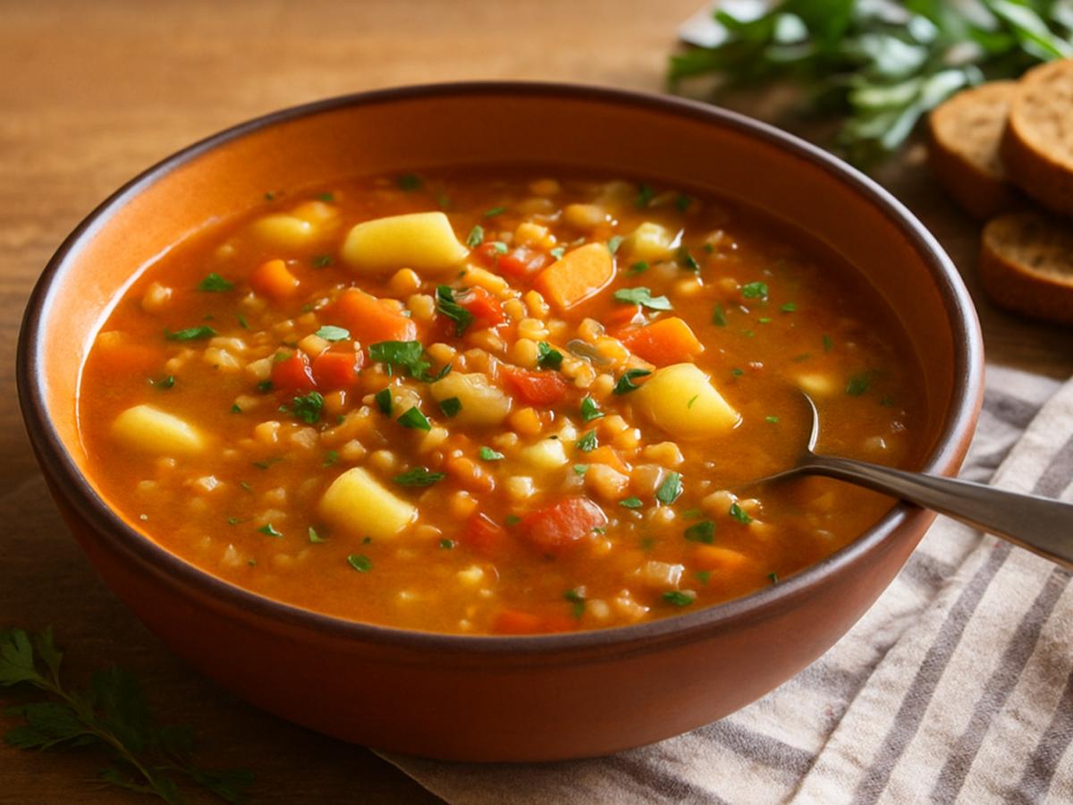 Фото: Generated by AI (DALL·E 3 by OpenAI) is licensed under Free for commercial use (OpenAI License) Чечевичный суп с овощами В чём секрет популярности этого супаУниверсальность и глубина вкуса — главные козыри этого рецепта. Красная чечевица, развариваясь, создаёт приятную бархатистую основу и даёт организму качественный растительный белок. Дуэт пасты карри и карри-порошка обеспечивает сложный, тёплый и пряный аромат. Кокосовое молоко смягчает остроту, придавая супу нежную сливочность без тяжёлой жирности, а свежий сок лайма в конце расставляет яркие акценты.