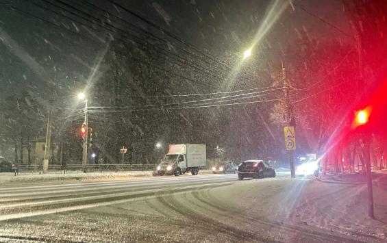 Коммунальные службы Курска ночью расчищали улицы после снегопада