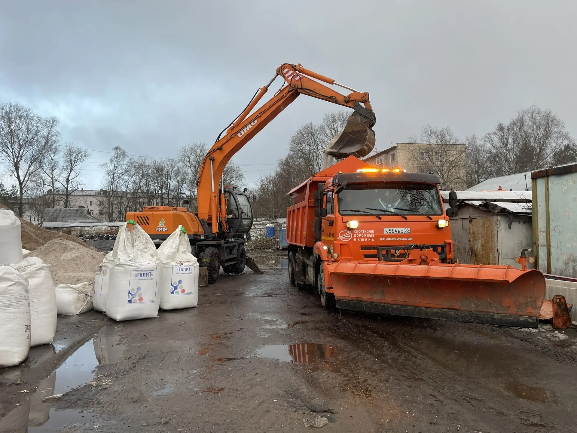 Силами МКУ «Городское хозяйство», МАУ «Парки Великого Новгорода» и ООО «Солид» осуществляется постоянный мониторинг дорог и тротуаров города, а также их превентивная обработка противогололёдными материалами для исключения скользкости и образования ледяных корок.
