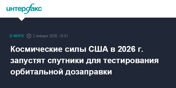 В мире18 декабря 2025США вывели на орбиту группу военных спутников в виде дисковЧитать подробнееКосмический аппарат Astroscale U.S. станет первым обслуживающим спутником, который проведет операции по дозаправке гидразином аппарата министерства обороны США. Этот маневренный космический аппарат массой 300 кг будет оснащен многоразовым баком для гидразина, что позволит осуществлять дозаправку клиентского спутника в ходе двух запланированных операций летом текущего года.