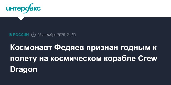 "По заключению ГМК (главной медицинской комиссии - ИФ) российский член экипажа USCV SpaceX Crew-12, космонавт Роскосмоса А.В. Федяев годен к выполнению космического полёта, в рамках соглашения о перекрестных полётах", - говорится в сообщении.